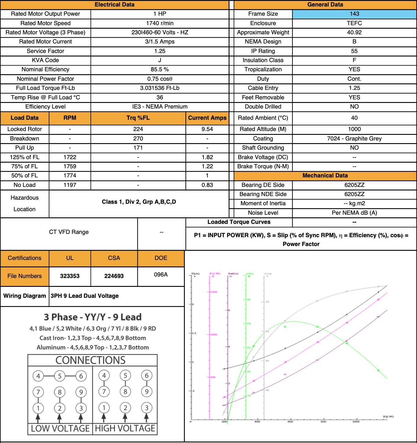 - Meets or exceeds NEMA Premium® Efficiency Requirements defined by NEMA MG-1, Table 12-12