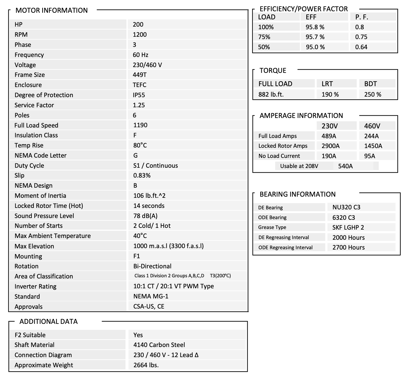 - 460 Volt at 60 Hz (200 – 500 hp) (449T-586/7 Frame)