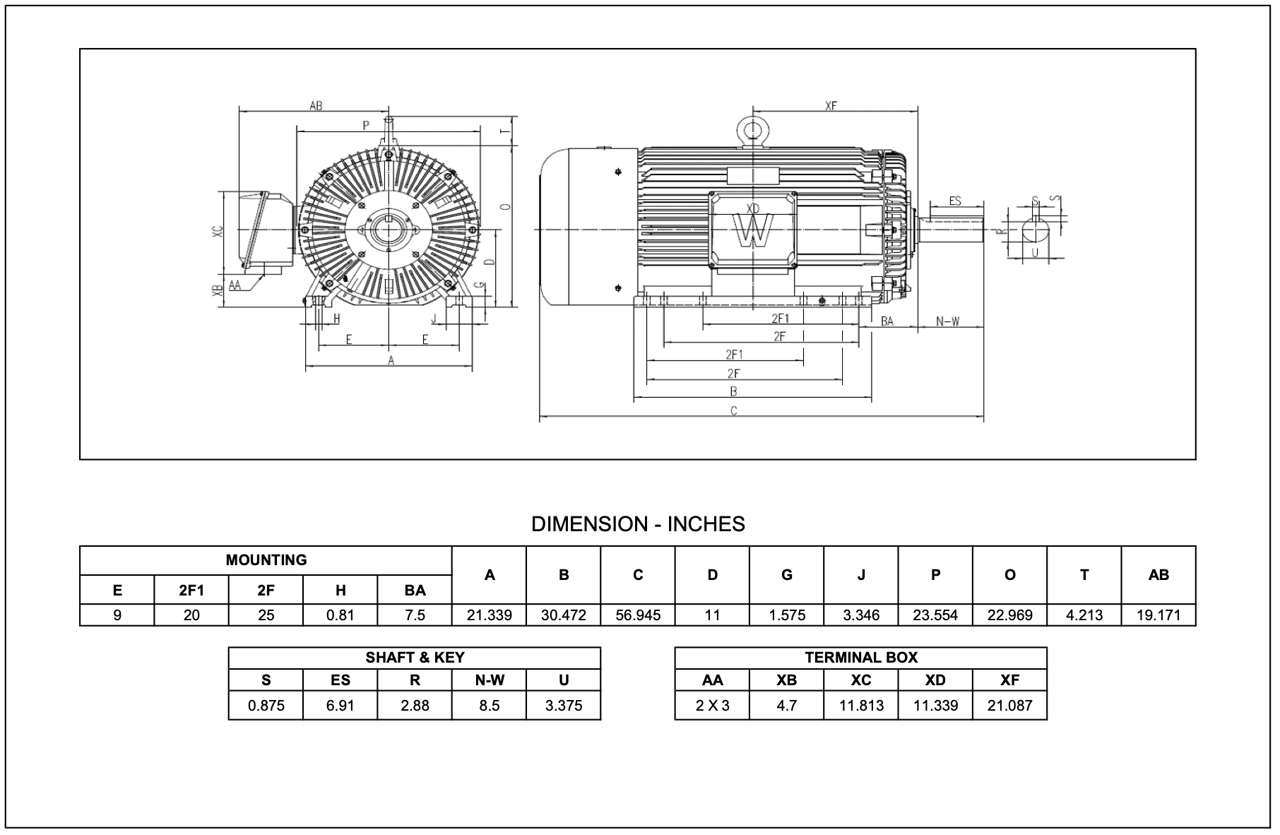 - Service Factor: 1.25 SF (1 – 200 hp), 1.15 SF (250 – 500 hp)